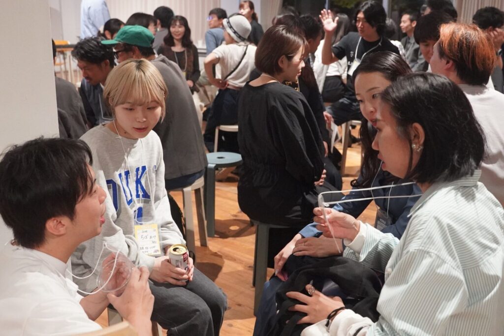 その後はレイアウトを変えて、軽食をつまみながらの交流会へ。