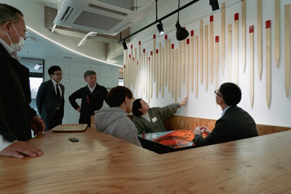 それぞれの素材について、空間づくりに用いられた経緯や社員研修からインスピレーションを得たというエピソードを交えて案内してくださり、佐々木建設のプライドと遊び心が詰まった素敵な空間を体感させていただきました。