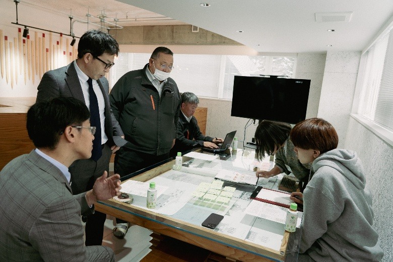 まずは佐々木建設社屋内のコラボレーションエリアにて事業説明。