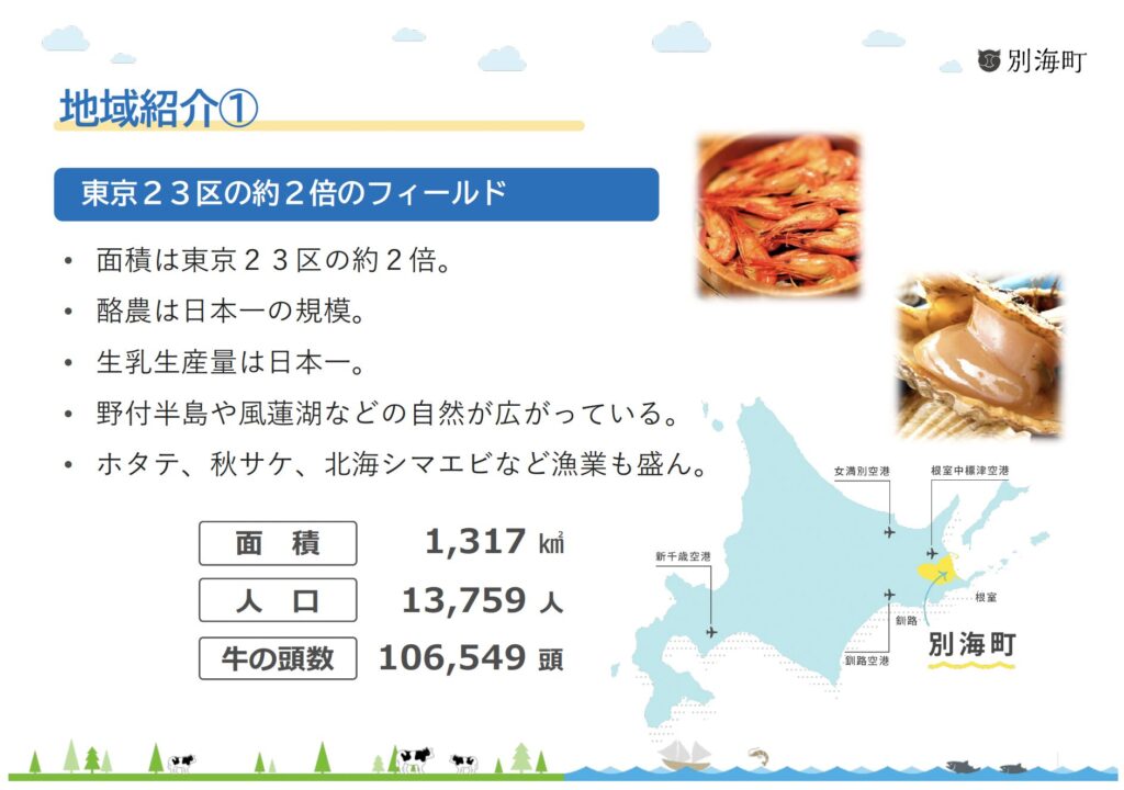 自治体プレゼンの2番目に登壇したのは、別海町 総合政策課の友定さん。プレゼンでは、日本一の酪農の町として知られる別海町が、今どんな挑戦をしているのかが語られました。