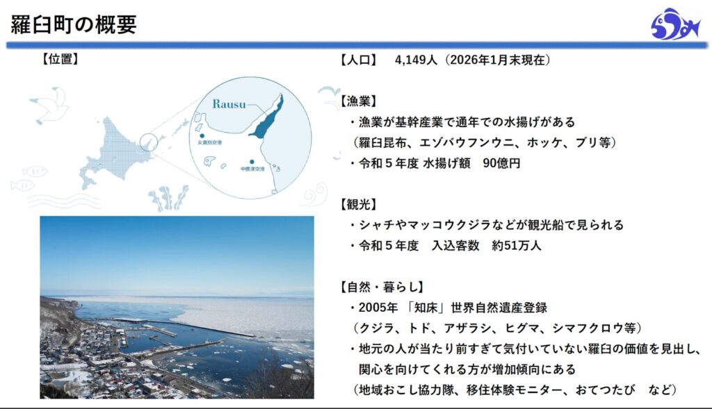 まだ誰もやっていないことがある。まだ形になっていない可能性がある。世界自然遺産の自然を背景に、新しい挑戦が生まれる余地がある町。羅臼町は、そんな可能性を持つ場所でした。