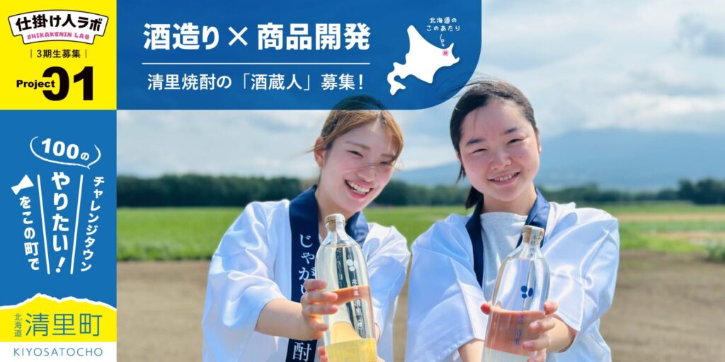 町営の焼酎醸造所として、1975年に清里町特産品プロジェクトが始動し、今年で50周年を迎える清里じゃがいも焼酎。そんな歴史ある焼酎醸造所で酒造りを学びながら、住民のアイデアを商品開発として形にするプロジェクトです。焼酎醸造所と地域を結びつける架け橋を担う「酒蔵人」として挑戦しましょう!